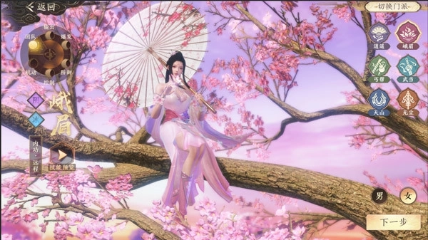 3、天山:天山属于近战输出门派,定位输出、爆发,武学提供了强势的【隐身】、【突进】能力,属于刺客类型的门派。喜欢身法灵活秒人于无形的玩家可选。