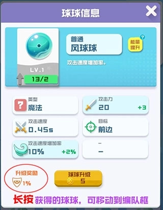 球球升级后,你会获得永久的暴击属性加成,是对所有球球生效的哦!所以千万别忘了升级!