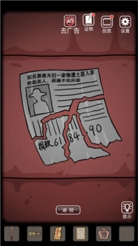 10、回到沙发的场景里,玩家将报纸碎片进行拼接,可以获得线索618490。