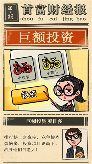 当你赚到一个“10亿”的小目标,你就有资格参与最有钱人之间的赌博游戏——商战。选择项目与首富竞争,看谁的投资眼光敏锐,收入丰厚。你更喜欢谁,黄色的车还是红色的车?当你赚钱的能力越来越强的时候,你可以举办一个宴会,和各行各业最富有的人交朋友,提高自己的声誉。名声越高,赚钱越快!还有很多功能等着你去探索!通过这个游戏,我终于明白我为什么这么穷了。原来没有有钱首富赞助我(手动狗头)!快来体验首富的烦恼吧!