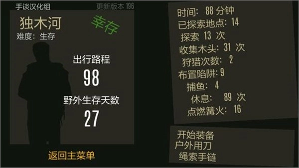 3、玩家进入游戏需要选择野外求生场景(独木河、山脉)以及求生难度(新手难度-野营、专家难度-生存);