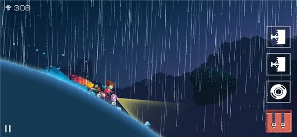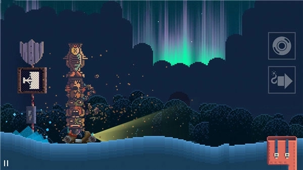 2、夏日追逐者游戏在主要元素上都采用像素块组成,从主要建筑、角色、场景上都是如此,但是在个别场景,远处的背景上的极光效果,则是比较平滑的图片。整体的视觉效果上还是挺舒服的。