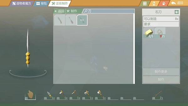 收集完原材料,就可以到“制作”页面去加工成你想要的工具了。