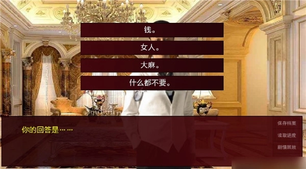 6、进入第四章后保存。第四章的选项会影响你进入的三种不同路线的剧情和结局
