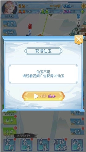 然后就是观看广告了,这是平民玩家获取仙玉的重要方法,每次花费30S观看广告就能得到20点仙玉,想要刷仙玉的玩家可以多看一些广告。