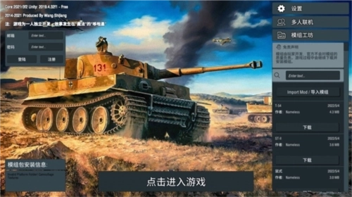 模组:可免费由玩家制作的坦克与地图,注意:玩家制作的模组在平衡性上有一定问题;