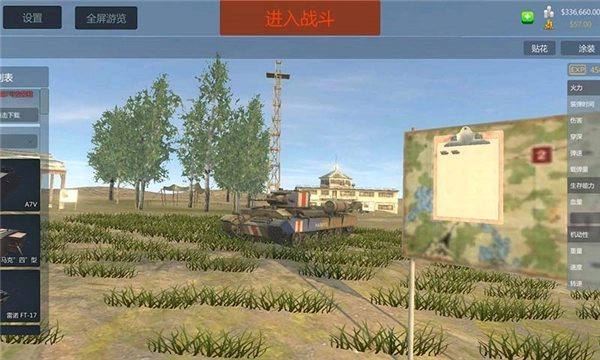 试车场:驾驶当前的载具进入试车场。可自定义靶车、测试坦克的性能与提升自己的作战能力;