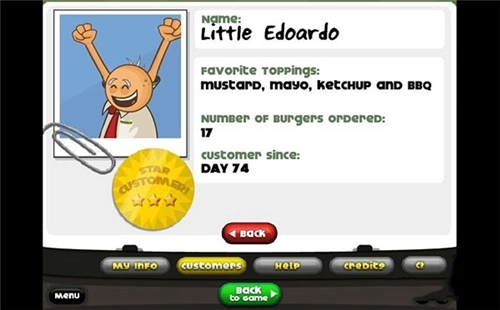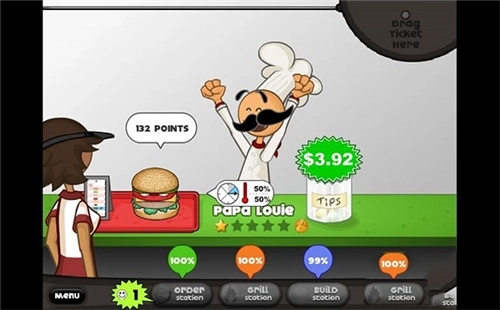 如果做出的汉堡得到了大家的称赞,那么玩家会得到更多的小费,玩家可以用这些得到的小费去买一些有意思的摆设,这些摆设可以让顾客们愿意多等一些时间。如果想得到更多的小费,那么最好是按照顾客所希望的顺序摆放食材,以及按照顾客的需求去烤制肉饼,并做出汉堡。