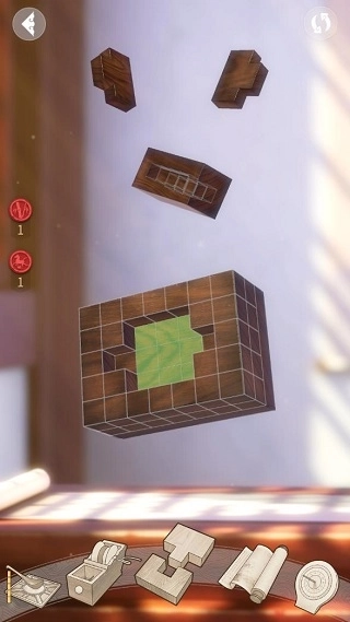 在每一关卡的开始我们应该分别查看屏幕中的各个结构,务必一边旋转物体并细心观察,看清楚各大物件的每个角落应该如何消减以便拼接。我们应该发挥自身的想象力与空间感,思考如何对物体切割才能让它们刚好吻合。如果感到无从下手,也可以先观察图纸,点击右下方的“图纸”按钮即可。