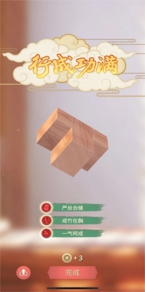 游戏的风格简单而休闲,“修行”模块采取关卡制,公测版本将推出二十二个章节,后续还会有新关卡推出。这些关卡大多考验玩家拼接古时候的家具造型。玩家们可以挑战经典物件的榫卯结构,感受传统木艺的巧思。
