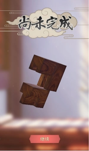 搭建榫卯结构的目标正是通过玩家精巧细腻的加工,使结构与结构之间严密扣合,达到“严丝合缝”的完美结合。以第一个关卡为例,画面中“榫”结构与“卯”结构分别将位于屏幕的上下两端,只需点击屏幕上方的物件,二者将会进行切换,在空白处滑动手指则能旋转位于屏幕中间的物件。