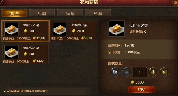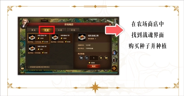 3、在农场商店中,各位领主可以购买种子来进行种植。种植后成熟的作物可以带来大量的收益,所以千万不要错过。值得一提的是如果长时间不收获,作物就会枯萎。枯萎的作物是无法获得收益的。