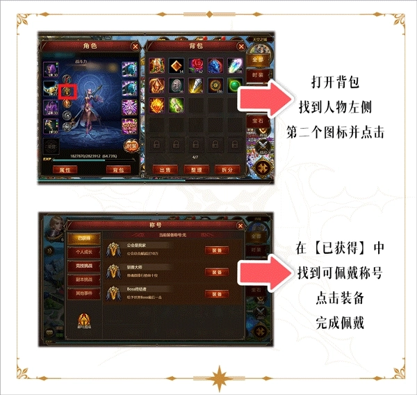 A:点击背包-点击人物左侧第二个图标-点击装备-完成佩戴