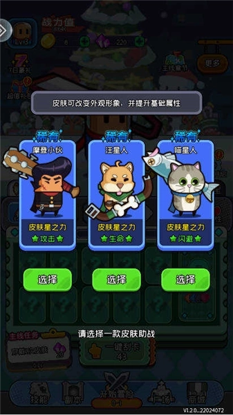 皮肤系统是游戏中的一大亮点,包含各种风格独特的卡通形象与专属武器,满足玩家的收集欲望。不同皮肤还能影响派遣系统和大乱斗玩法。派遣系统通过日常操作积累资源,等级越高,奖励越丰厚。而大乱斗模式则考验皮肤养成策略,三路对战、九位角色,采用“田忌赛马”式排兵布阵,也有机会逆袭强敌!