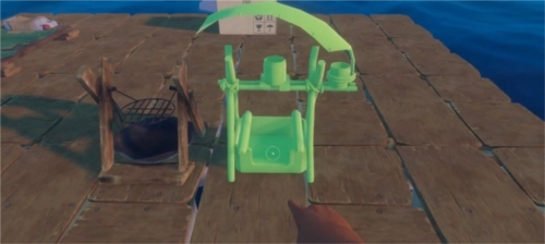 在我们可以建造工具的时候,锤子是必须的,锤子的功能也是很多的哦,我们建造木筏的关键所在,手拿锤子时,按住鼠标右键以进入锤子的多功能菜单。