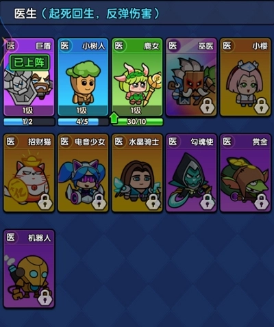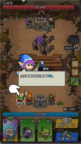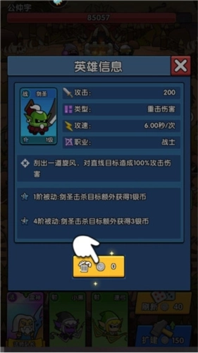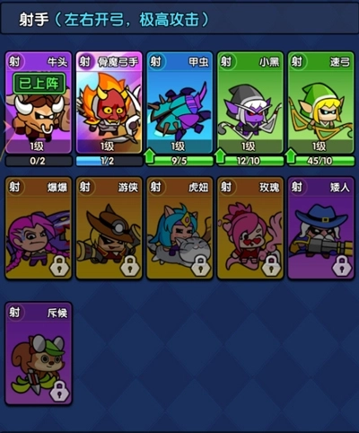 1、在游戏中,点击下方的角色即可进行上阵,选择一个后其余的两个角色就会消失。每个职业内部也会有不同能力的英雄,用金色,紫色,蓝色,绿色,不同的颜色来代表不同英雄的强度。