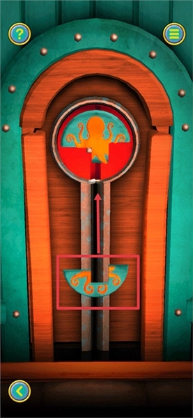 6、把【光碟】装到大门内侧的凹槽里,接着按照图示操作:先将【光碟】转动到线条呈上下走向的位置,再把下方的碎片往上拉,就能把它装到【光碟】上;装好一个碎片后,把【光碟】旋转180度,就可以继续安装下一个碎片了。