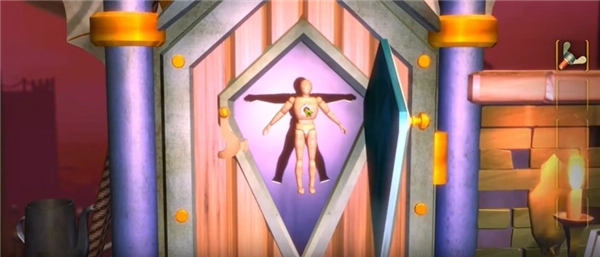 9、再次转到正面,把人偶放入,通过旋钮调整人偶的形状,使其与门的形状相契合。