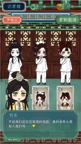 继承了一座戏园子是一款好玩的带有浓浓古风画面的模拟经营类,该游戏中玩家是穿越到古代,在这里继承了戏园子,你需要将戏园子打理好,从一座荒芜的破烂的院子打理成优秀的戏园子。玩家可以在这里选择各种可爱q萌的人物角色,而且游戏里还融入了非常多戏曲元素,给游戏增添了许多乐趣,让游戏变得更加生动有趣,再也不是枯燥无味的,深深的吸引了无数游戏爱好者的加入。