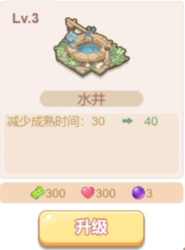 首先最最最重要的就是小主田园里面的水井,这个小主能升多高等级升多高等级,等级越高相对于的农作物的成熟时间就会被减少,这样原来一样的时间小主就能出两倍的产量,等级升级高后,在家里乐呵呵数钱就行啦!