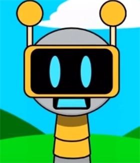3、Funbot快乐机器人,性别为非二进制男性,是一个拥有蓝色眼睛的机器人。