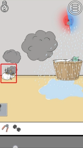 25、先向左切换场景,从健身器材下方拾取砝码;接着向右切换场景,把砝码放置在右下角的压力板上;随后拉下左侧拉环并固定在钩子上,再拉下右侧拉环获取火柴;用火柴点燃右侧的包裹袋,触发降水警报,让妖怪被淋死;之后拨开轮胎取下电线;最后向左切换场景,点击GO就能顺利通关!