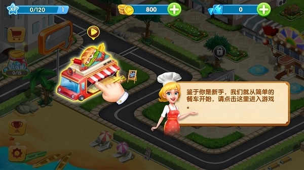 鉴于你是新手,我们就从简单的餐车开始,请点击这里进入游戏。