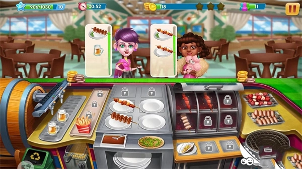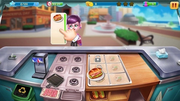 进入营业后,你的客人会源源不断的前来消费,此时你需要根据顾客的点餐需要来制作对应的食物,而这里的制作方式是分开进行的,也就是说,配料的搭配显得尤为重要,每一样顺序就更加重要了,若搭配失败怎么办?只能将制作好的食物丢掉了,而这将影响顾客的耐心,并有损时间,限定时间内完不成目标,将得不到三星评价,也就意味着玩家要升级的速率变低。