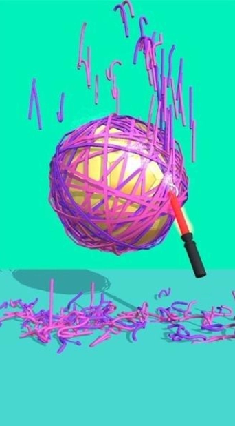 1、玩家要留意物体上皮筋的缠绕形态,通过手指滑动或点击屏幕来启动切割操作,把所有皮筋都彻底切断让它们掉落,以此完成单个场景的挑战。