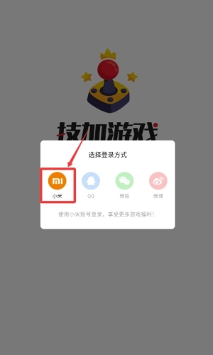 1、选择小米图标,使用小米账号登录游戏。