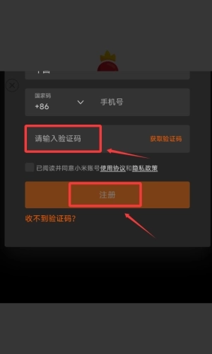 3、填写验证码,勾选协议完成注册。