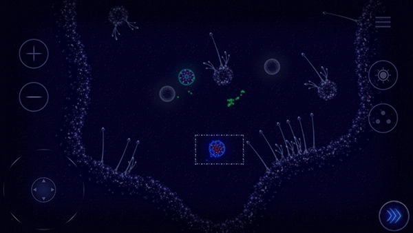 2.界面左上角设有加减按钮,可用于调整视角的放大与缩小,需注意控制微生物在地图中持续吞噬其他细胞。