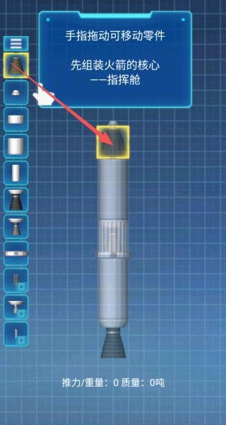1、通过点击并拖动各个零件至指定位置,逐步完成火箭的组装任务。