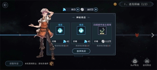 神秘商人一-出售品质较高的魂骨、装备、道具;