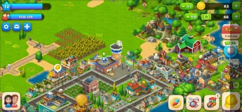 梦想城镇这款游戏操作简单,在游戏开始时,会有动画操作演示,玩家在梦想城镇游戏开始时可以随着动画操作进行种植庄稼,建造房屋建筑,农副产品生产等,还可以用直升机将产品运往居民的住处,完成订单。