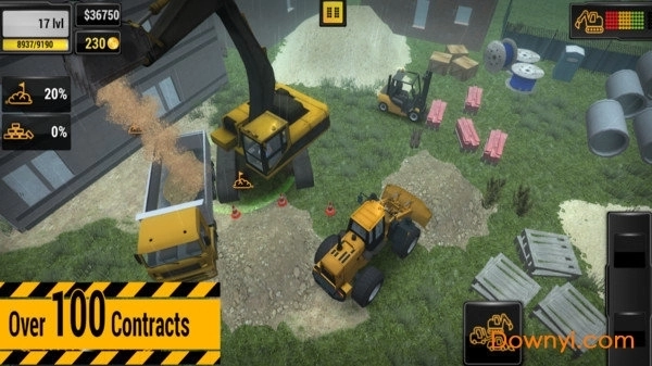 建筑机器的控制逼真实用,特别为移动设备而优化,例如支持挖土机的欧式操纵杆控制:游戏的操作系统经过精心优化,特别适合移动设备,玩家可以轻松操控各种建筑设备。