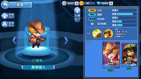 1、羁绊:与散弹猎人一起,生命+2000。