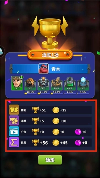 7、对战结束后,会进入【游戏结算】界面,在这里可以查看胜利方的炮塔阵容以及所获得的奖励。