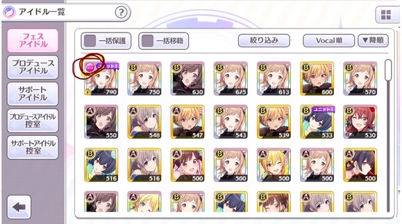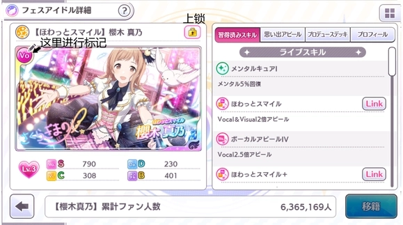 图中圈出的为已标记偶像:(如图)此时为上锁状态,未上锁可以移籍(卖Fes偶像)
