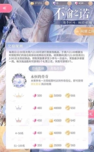 竞技场挑战开放时间为每周日12:00到次周六21:00,段位奖励将在每周六21:00依据搭配师当前的段位及排名进行结算。
