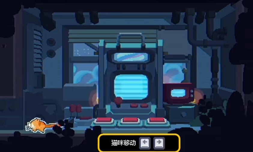 3、进入关卡挑战,用左手操控小猫咪移动——在平地上是常规移动,要是长按左右方向键,小猫咪就会直接变成液体猫,顺着管道滑过去。