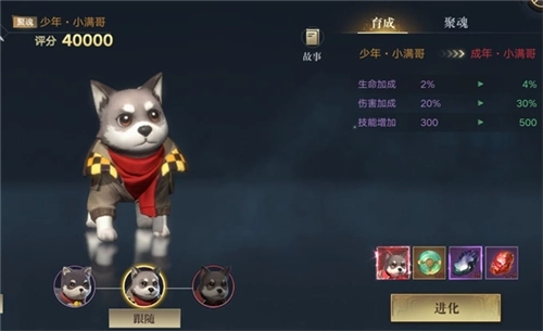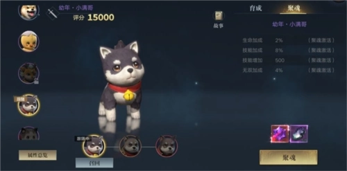 聚魂是宠物自带的另一种养成途径,消耗聚魂材料即可提升宠物的实力!