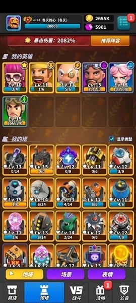 1、主流阵容:黄金加特林,仿生蛇,魔镜,分裂装置,克隆。角色带雷电博士或者陆战队队长。(适合微氪玩家)
