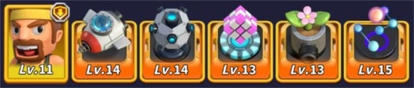 激光炮会在沿途设下警戒线,越过警戒线的敌人会激活激光炮的攻速和暴击,冰墙和暴风雪能让怪物减速并阻挡怪物前进,风扇可以降低己方怪物移速并增加对手的怪物移速,成长装置搭配幸运兔女郎可以防止被主流阵容秒塔,该阵容可以把激光炮换成人造火山。