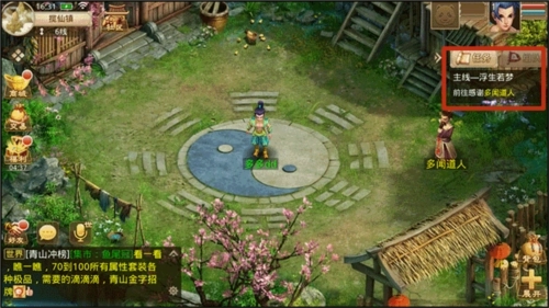 1、启动问道快手版进入游戏后,当玩家到达该场景时,需点击对话来推进剧情。