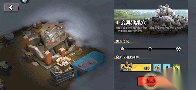 探索:你将结识极具特色的部族领袖,还能得到部族参谋罗杰的助力;末世后的奇妙地面世界,藏着不少惊喜,等待你自行发掘;在郊外,你会遇到一些凶悍的变异猿。率领军团击败它们,所有战利品都归你;此外,宏伟的人类遗址深埋地下,体型巨大的变异头领在地面游荡!