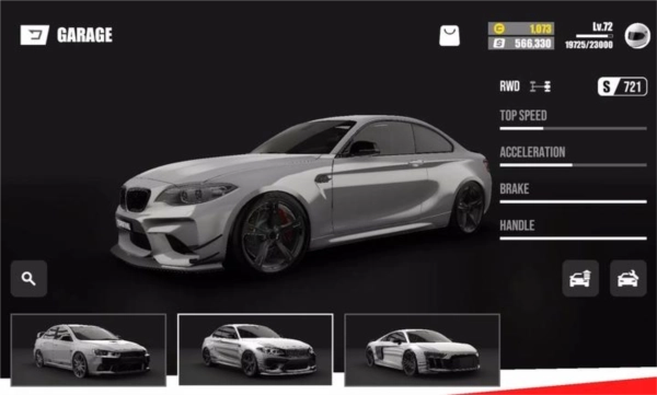 6.升级系统:游戏内配备车辆升级功能,玩家能够借助赛道奖励与挑战任务获取金币,进而用于增强自身车辆的性能表现。