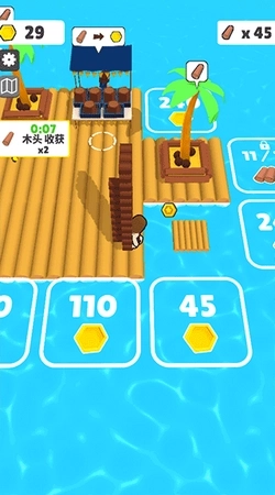 2.玩家开始收集木头,扩展木筏小岛的空间。