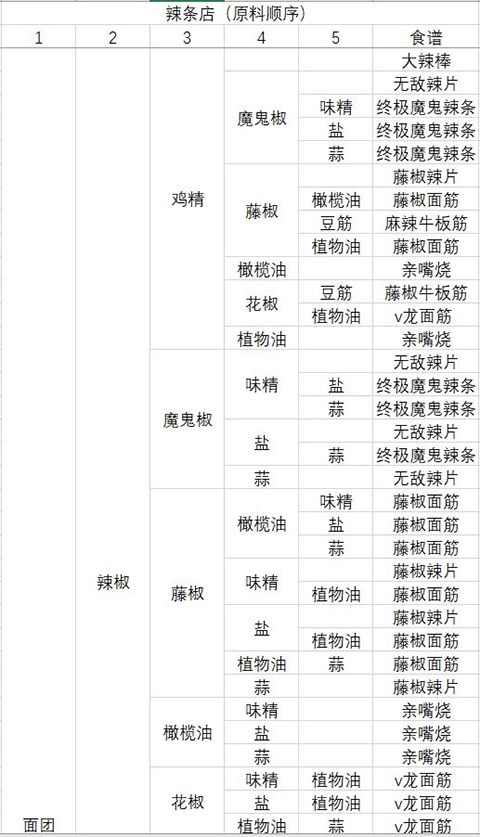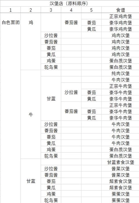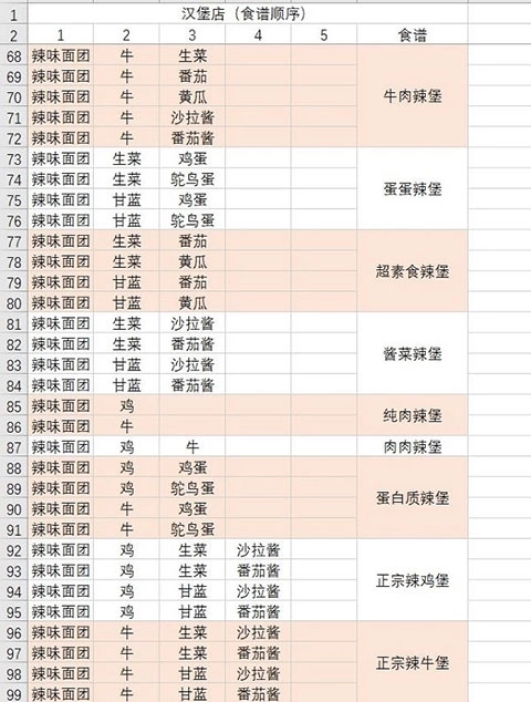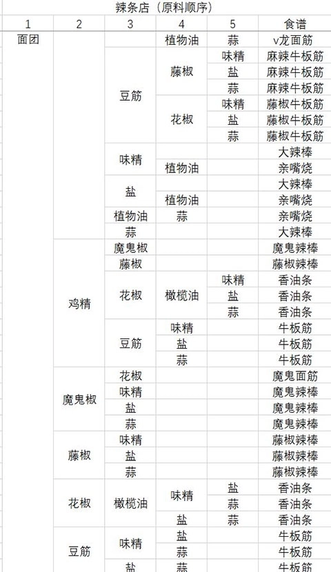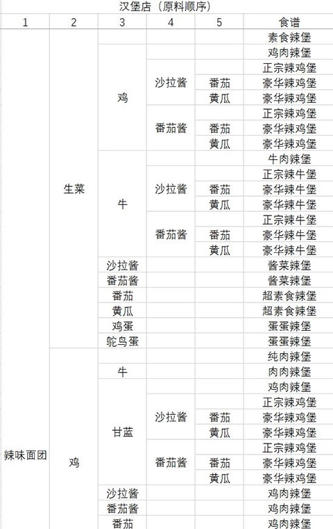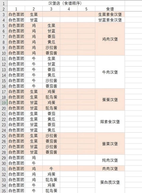 根据(可能存在的)不同需求,可将食谱划分为两类:一类是依照食谱本身的顺序,另一类则是遵循原料获取的顺序。