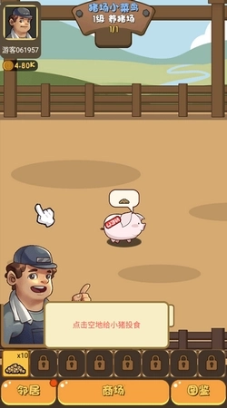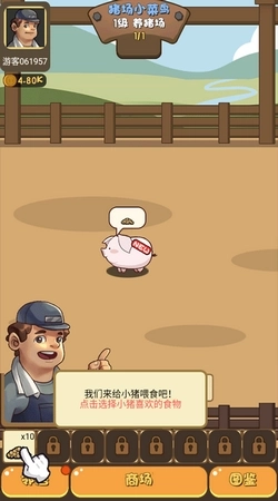 2.玩家开始给猪仔喂食,提供刚购买的猪饲料。